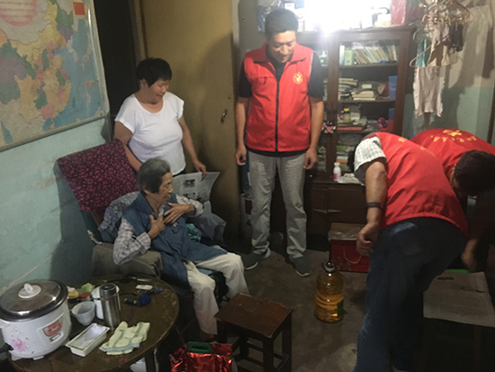 志愿者对社区2户“空巢老人”进行节日慰问,并送上大米、鸡蛋、油,和农业农村部定点扶贫县龙山县特产。活动交谈了解到他们的生活,思想情况,为老人们送上了节日的祝福。慰问活动气氛和谐,老人们都很高兴,均发自内心的表达对党和志愿者的感谢之情。