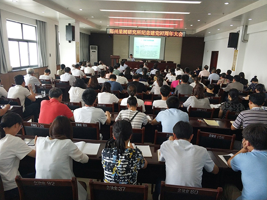 6月29日,在中国共产党成立97周年即将来临之际,郑州果树研究所召开庆祝建党97周年大会,在家所领导、在职党员、学生党员、离退休党员、入党积极分子一百余人参加了会议。副所长方金豹主持大会,党委书记赵玉林为全体党员讲党课。
