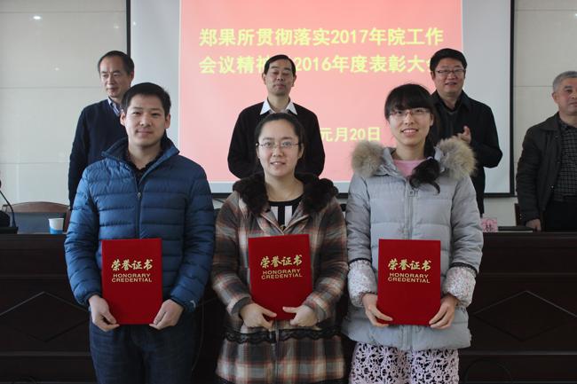 1月20日,郑州果树所召开全所职工大会,传达贯彻院工作会议和院党风廉政建设工作会议精神,研究明确2017年发展目标和任务,对2016年度先进集体和个人进行表彰。所领导班子成员及全体职工参加了会议,会议由方金豹副所长主持。